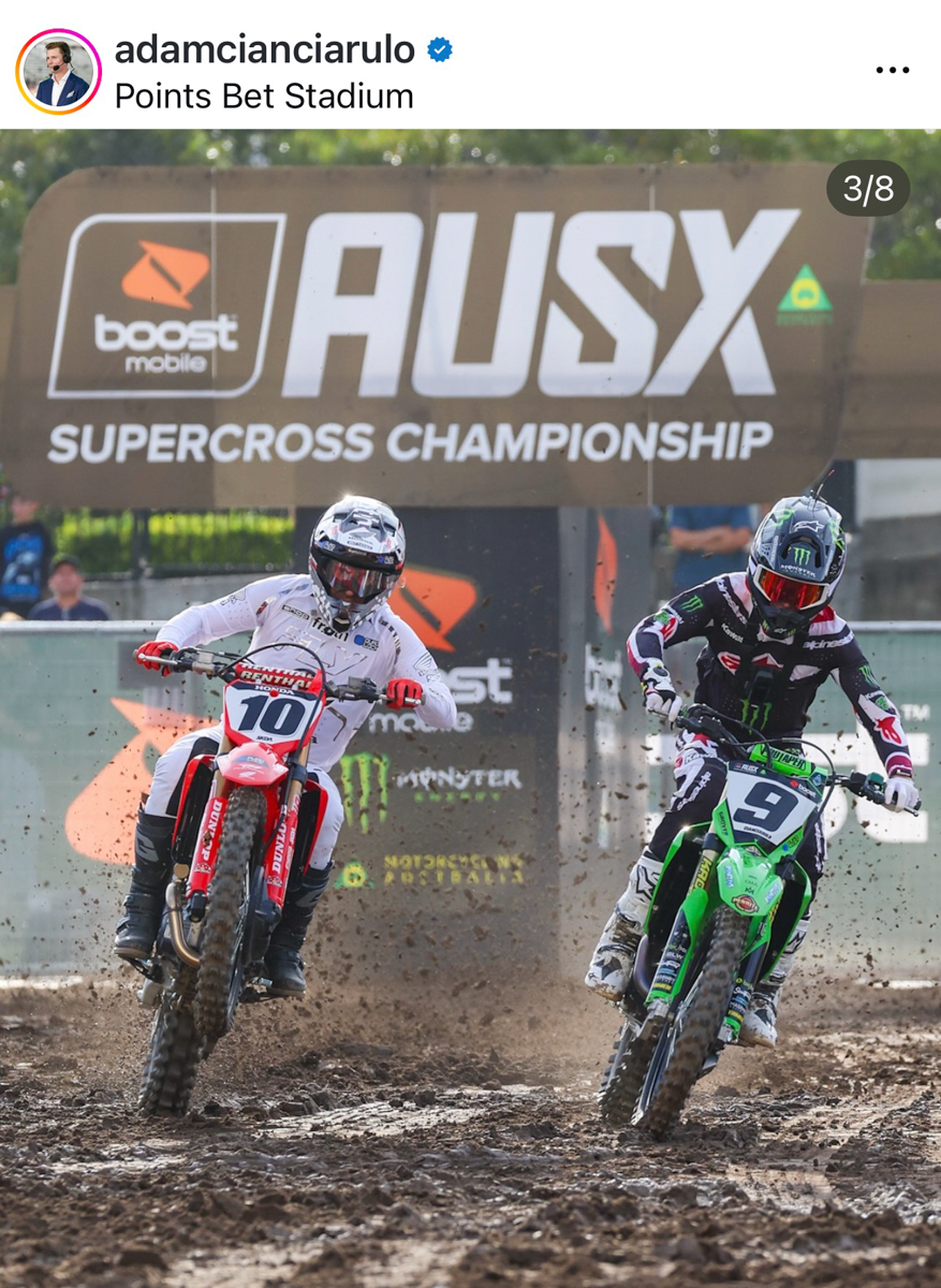 Justin Brayton et Adam Cianciarulo font un détour par le SX australien pour parfaire leurs nouveaux rôles de commentateurs (qui savent encore bien rouler).