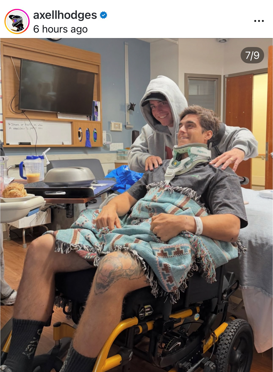 Axel Hodges passe du temps avec son pote Adolf DaSilva, désormais paraplégique, après son énorme chute au RedBull Rampage.