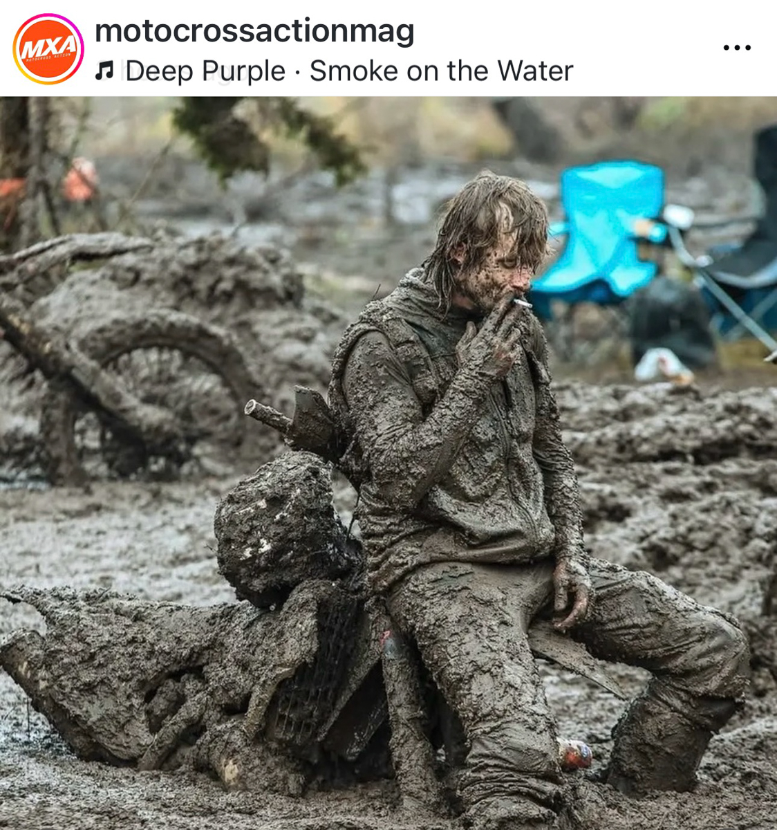 Le magazine « Motocross Action » poste la photo du mois : une course d’enduro en Suède. Tout simplement.