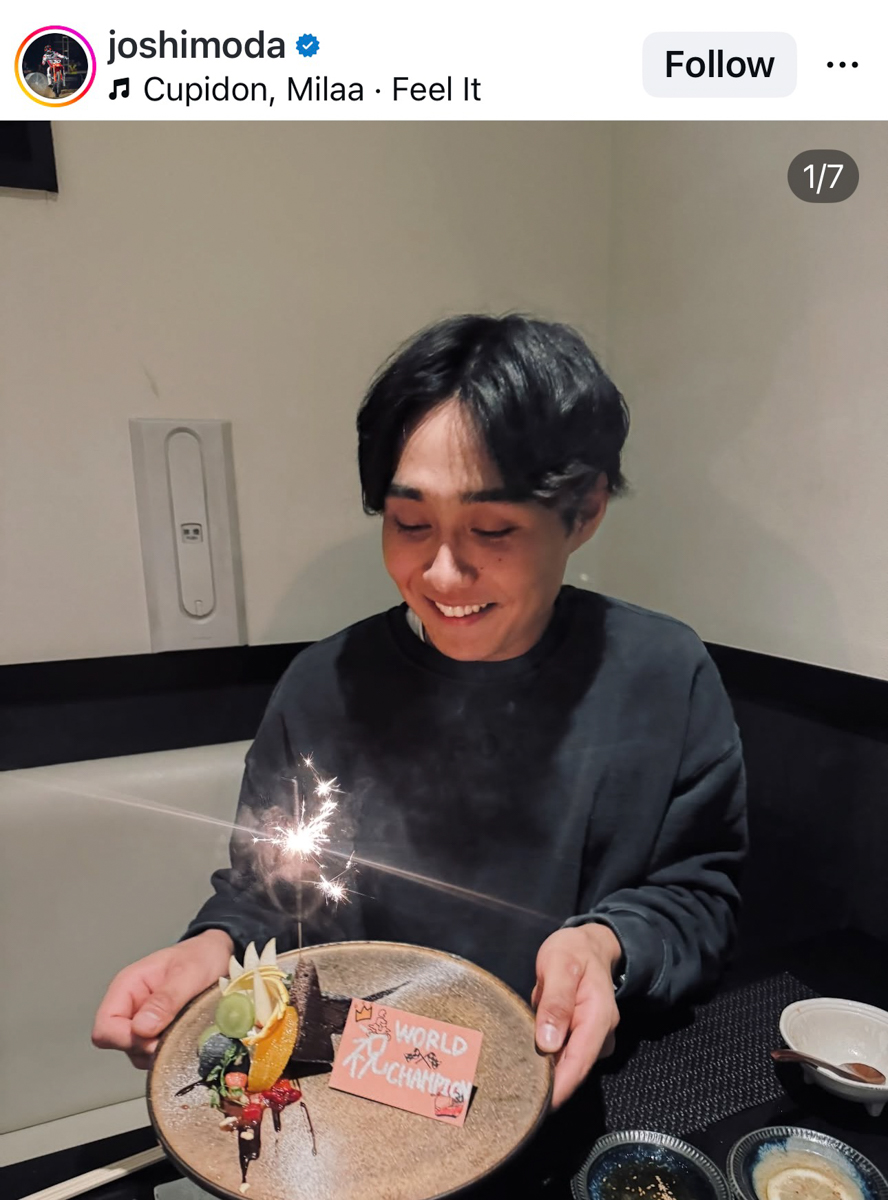 Jo Shimoda fête son anniversaire au Japon avec le plus petit gateau du monde.