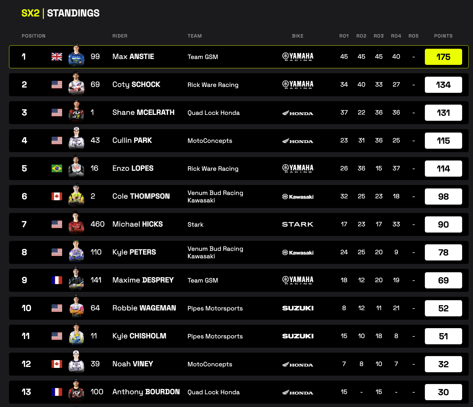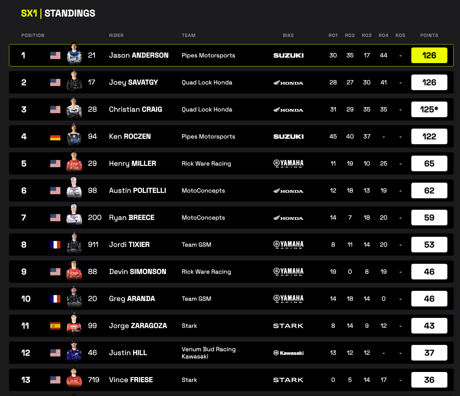 C’est la finale du championnat du monde de Supercross FIM ce week-end en Afrique du Sud. En SX1, le suspense est à son comble avec Jason Anderson, Joey Savatgy et Christian Craig qui ne sont séparés que d’un petit point, tandis que Max Anstie aborde cette finale avec une avance très confortable. L’épreuve est à suivre en direct sur Recast pour 7,50 dollars.