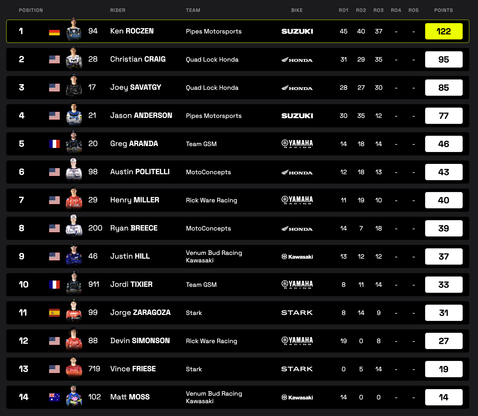 Le Championnat du monde de Supercross FIM se poursuit ce week-end à Stockholm, en Suède. Ken Roczen, actuel leader avec 122 points, ne dispute pas les deux dernières épreuves. La bataille pour le titre SX1 se joue donc entre Christian Craig, Joey Savatgy et Jason Anderson. En SX2, Max Anstie reste invaincu, le Britannique a tout remporté depuis l’ouverture de la saison en Argentine. Côté retransmission, l’épreuve est diffusée en direct sur Recast via leur site internet, pour 15 dollars, un tarif donnant accès au live des deux dernières épreuves.