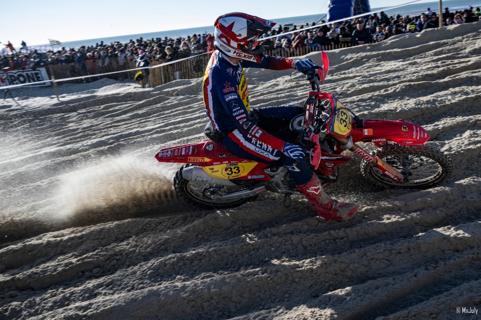 Weekend on ne peut plus chargé pour le team Honda SR Motoblouz, présent à la fois sur la côte d’Opale pour l’Enduropale du Touquet et en Grande Bretagne pour le coup d’envoi du championnat du Monde de Motocross. Et des deux côtés du ‘Channel’ les couleurs du team ont été mises à l’honneur. Commençons par l’Enduropale, épreuve mythique qui reste le point d’orgue de la saison des courses sur sable ; la course a été fidèle à sa légende, avec ces accrochages inévitables quand pilotes amateurs et professionnels se partagent la piste. Malgré cela et pour sa troisième participation à l’épreuve Lars Van Berkel décroche un podium, son quatrième cette saison et bien sûr le plus beau de tous ! Pour sa première expérience au Touquet Cyril Genot n’a pas été gâté puisqu’il pointait hors du top quarante en début de course ; il n’a rien lâché pour revenir en sixième position, un excellent résultat pour un ‘rookie’. Et avec la douzième place de Matheo Miot le team Honda SR Motoblouz place ses trois pilotes dans le top douze, un beau résultat d’ensemble alors que la saison de motocross reprend.