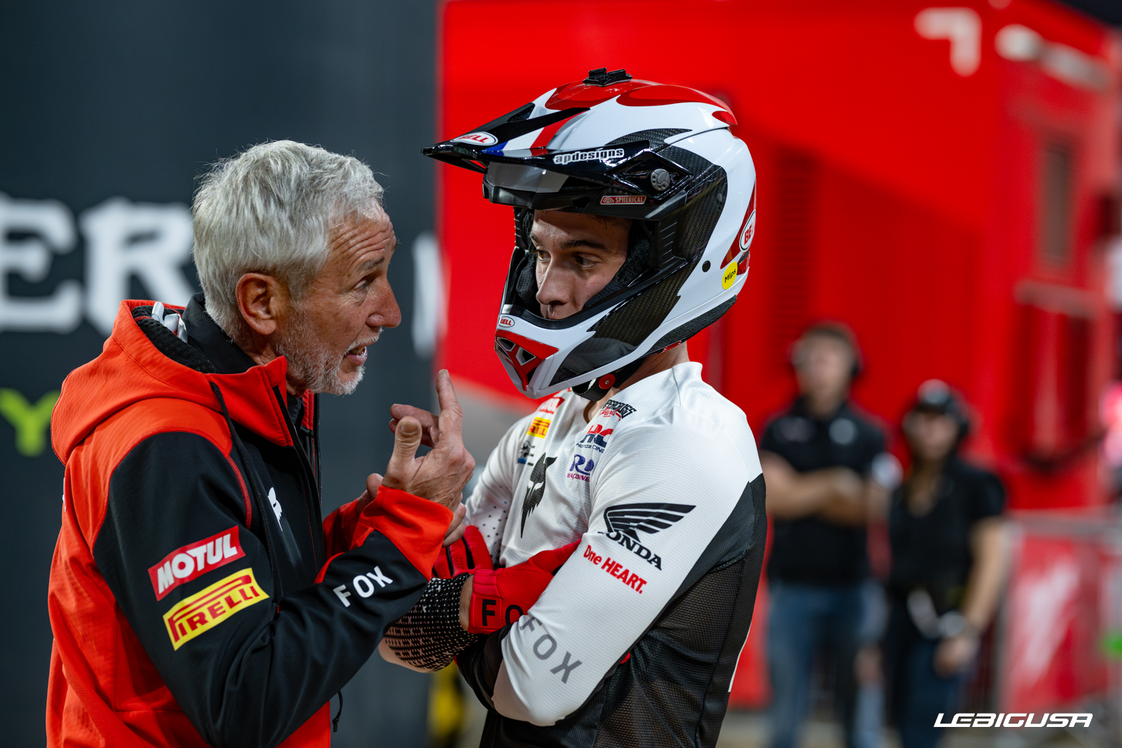 Que peut bien dire Jacky Vimond à Tom Vialle pendant le Supercross de Paris ? On vous laisse imaginer la conversation mais s’il vous plait, faites-nous rire. Merci.