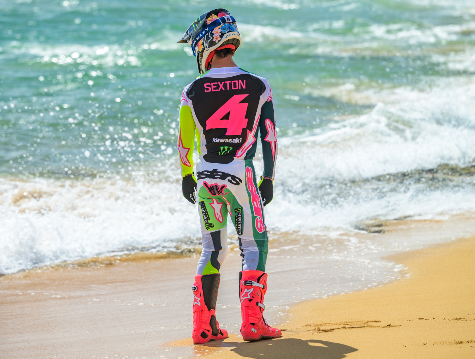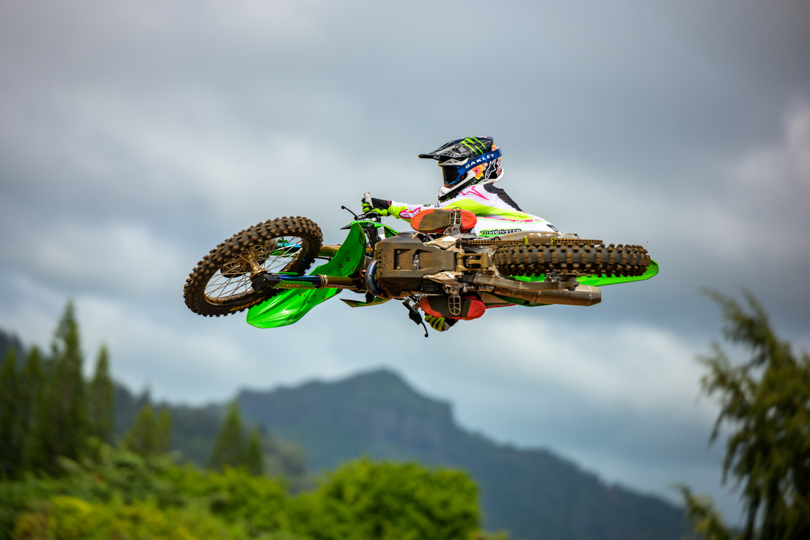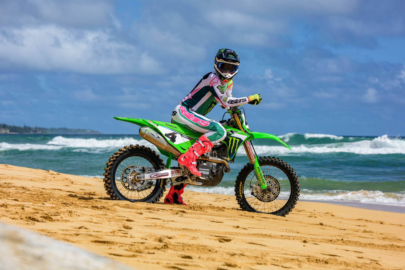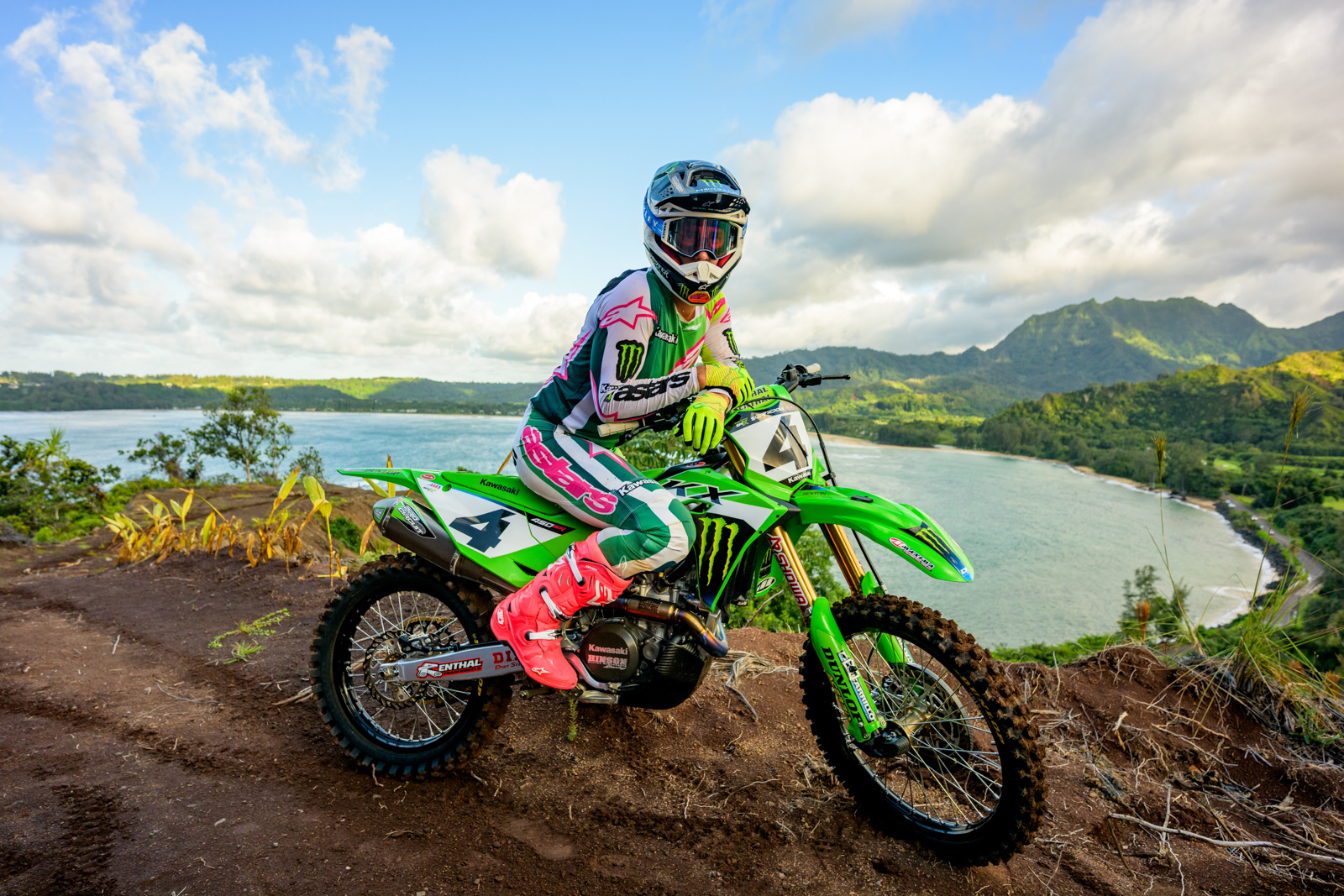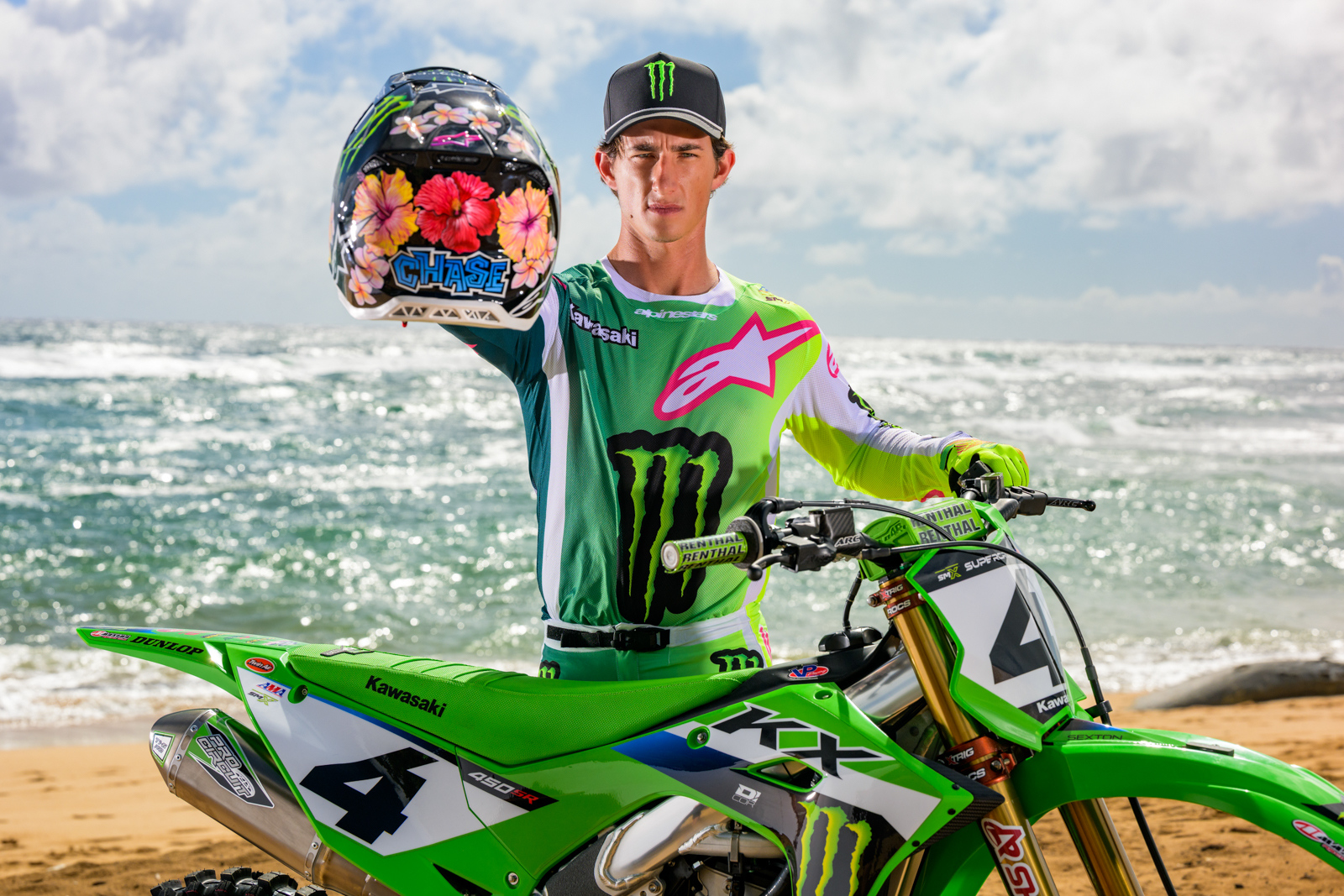 Qui a eu l’idée géniale chez Monster Energy Kawasaki de présenter Chase Sexton sur l’ile d’Hawaï ? Les photos sont tout simplement d’une beauté à couper le souffle.