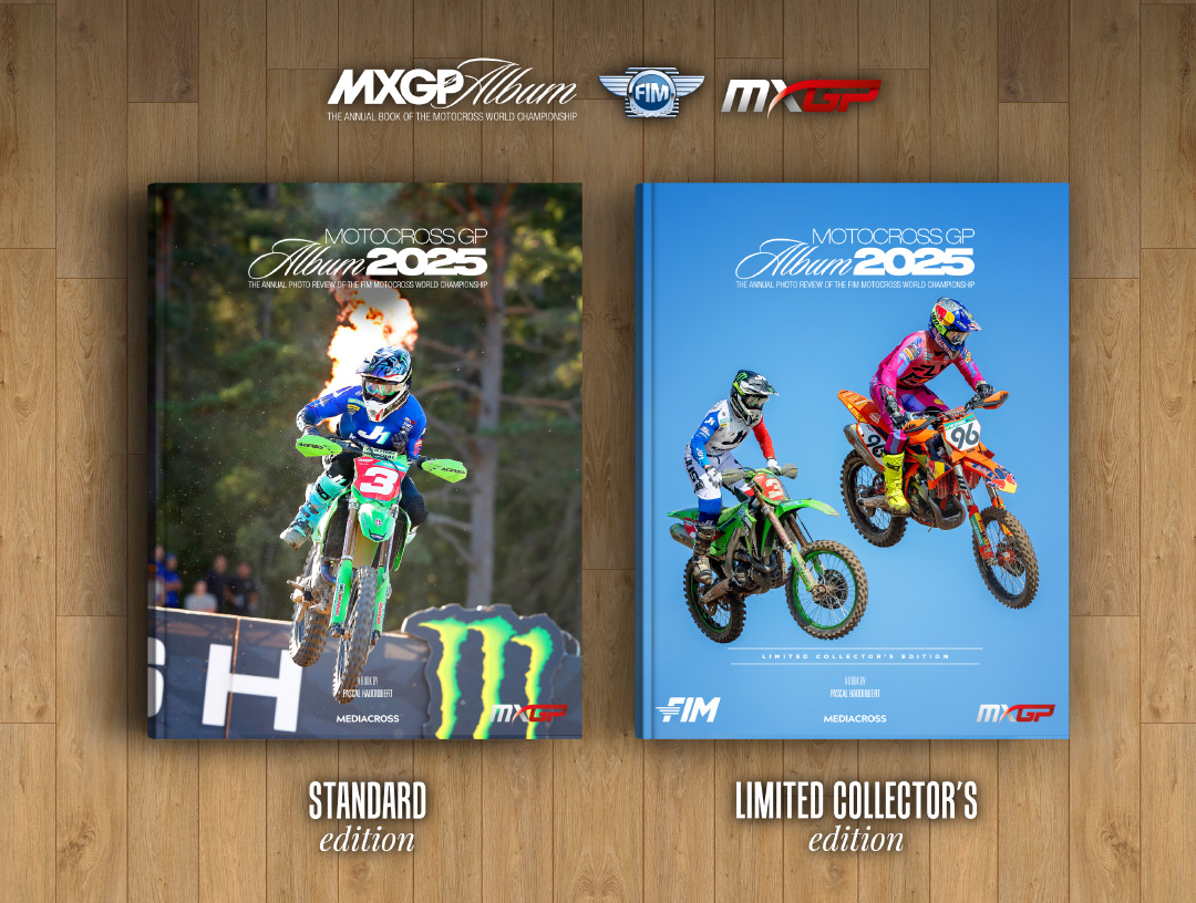 Couverture rigide, 192 pages, plus de 190 photos pour la plupart inédites prises sur les 20 rounds du Mondial sans oublier le MX des Nations, c’est Motocross GP Album 2025 qui vous sera livré début décembre au pris de 46,90 € (+frais de port), un tarif inchangé depuis deux ans. Il est disponible en pré vente en version standard ou limited dès maintenant et jusqu’au 12 octobre prochain :