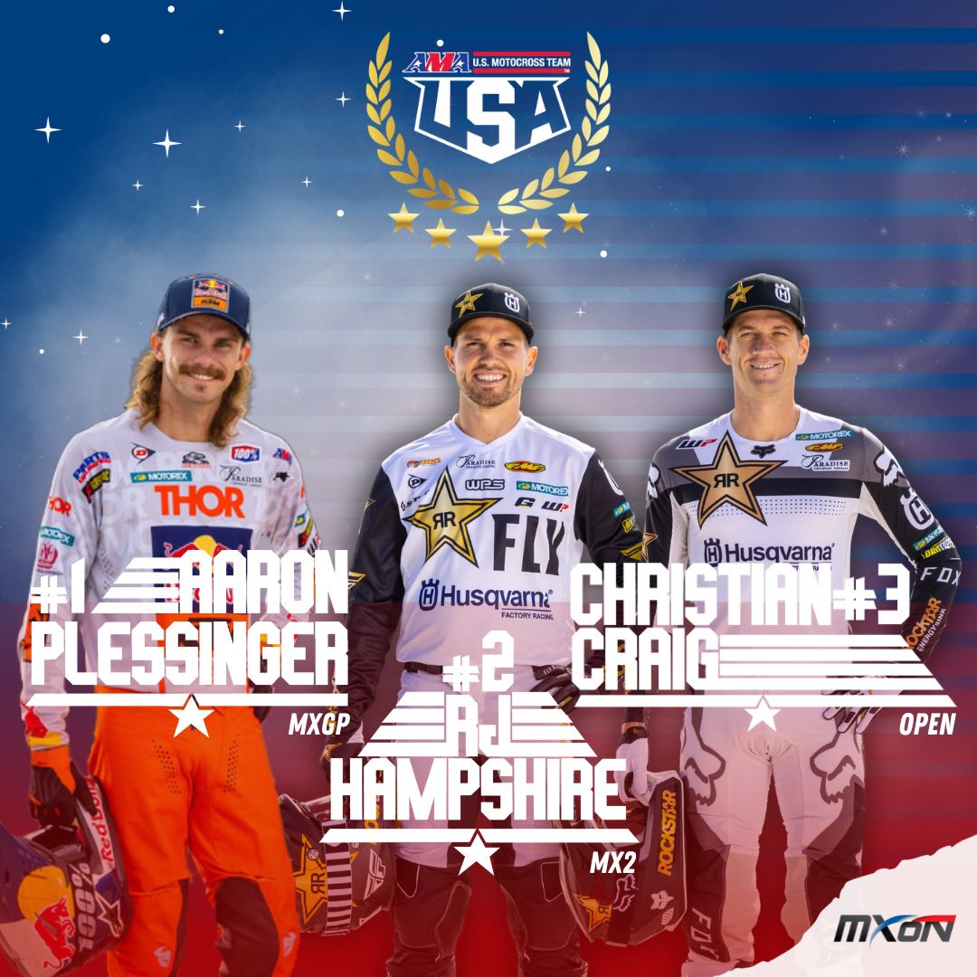 C’est donc confirmé officiellement : l’équipe américaine au Motocross des Nations à Ernée est composée de Aaron Plessinger (MXGP), Christian Craig (Open) et RJ Hampshire (MX2). La « polémique » prend donc fin. Que le meilleur gagne maintenant.