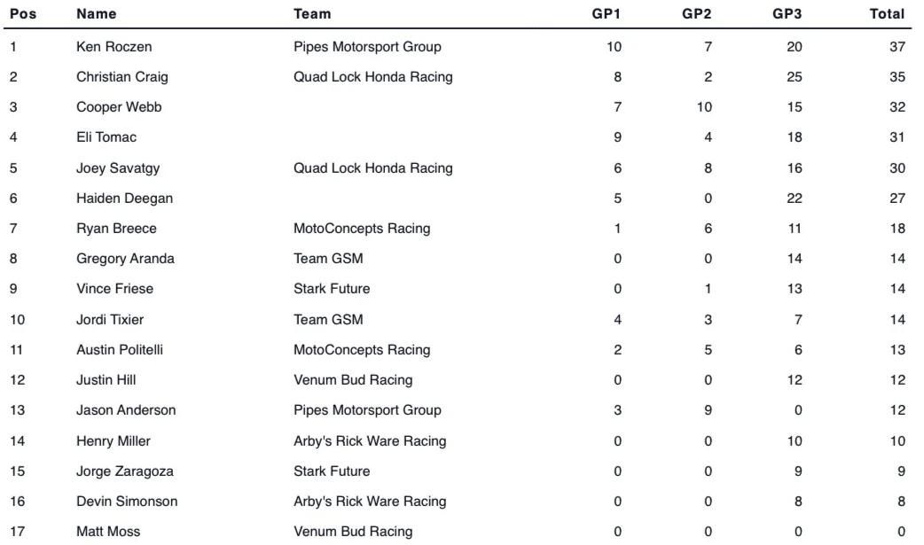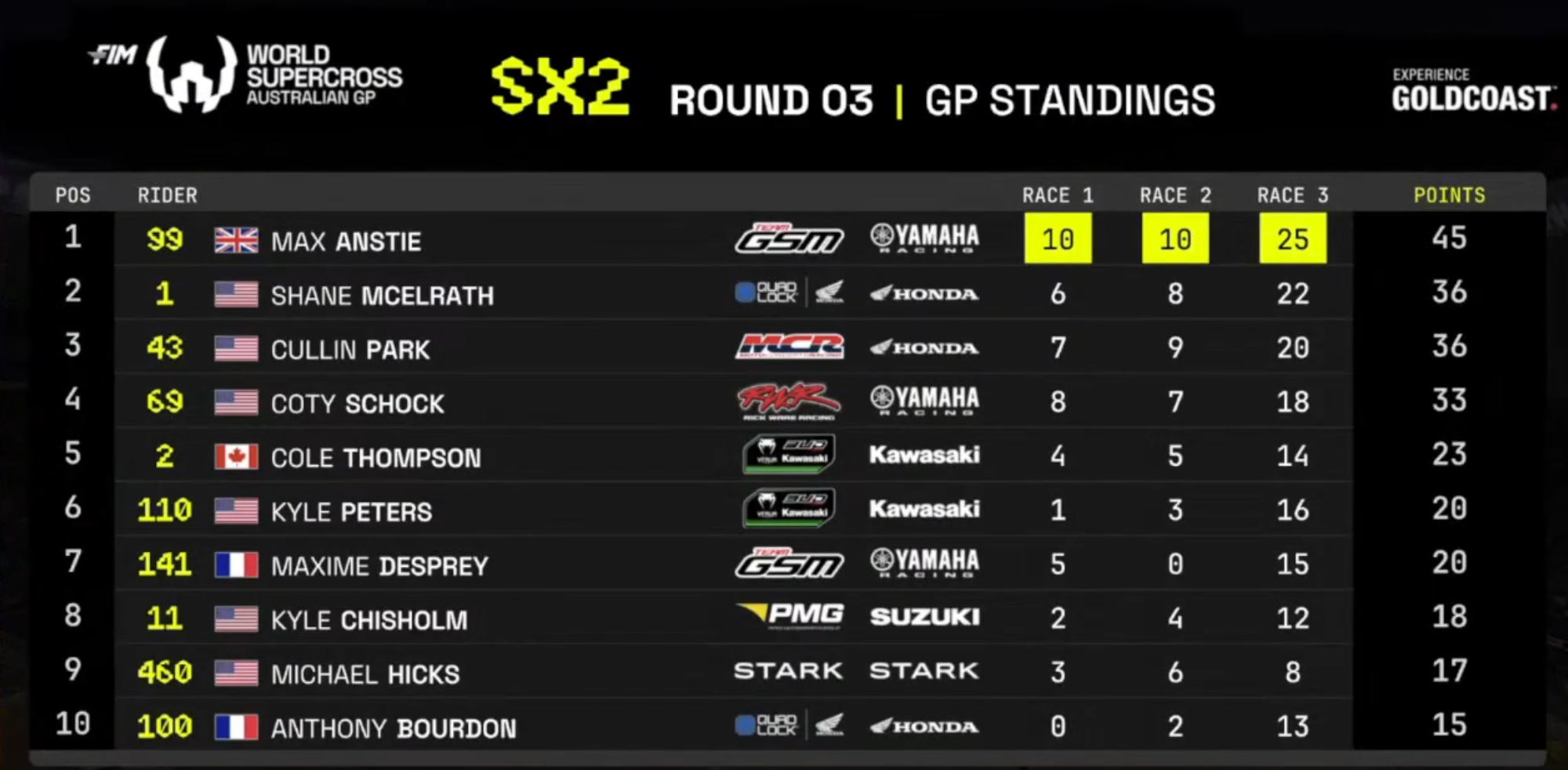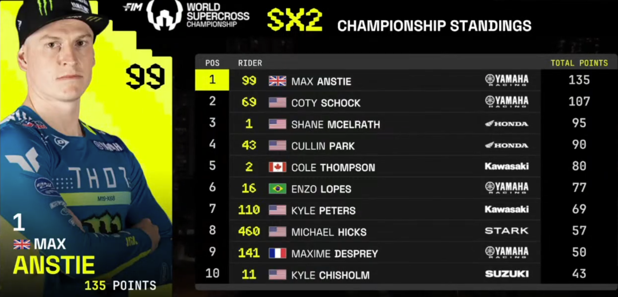 ce championnat commence a avoir de la gueule sérieusement 😁avec de belles bagarres.tomac a dû sucer un amortisseur dans chaque manches vu le passage dans les whoops😂.dommage pour le terrain un peux trop sec sinon top.