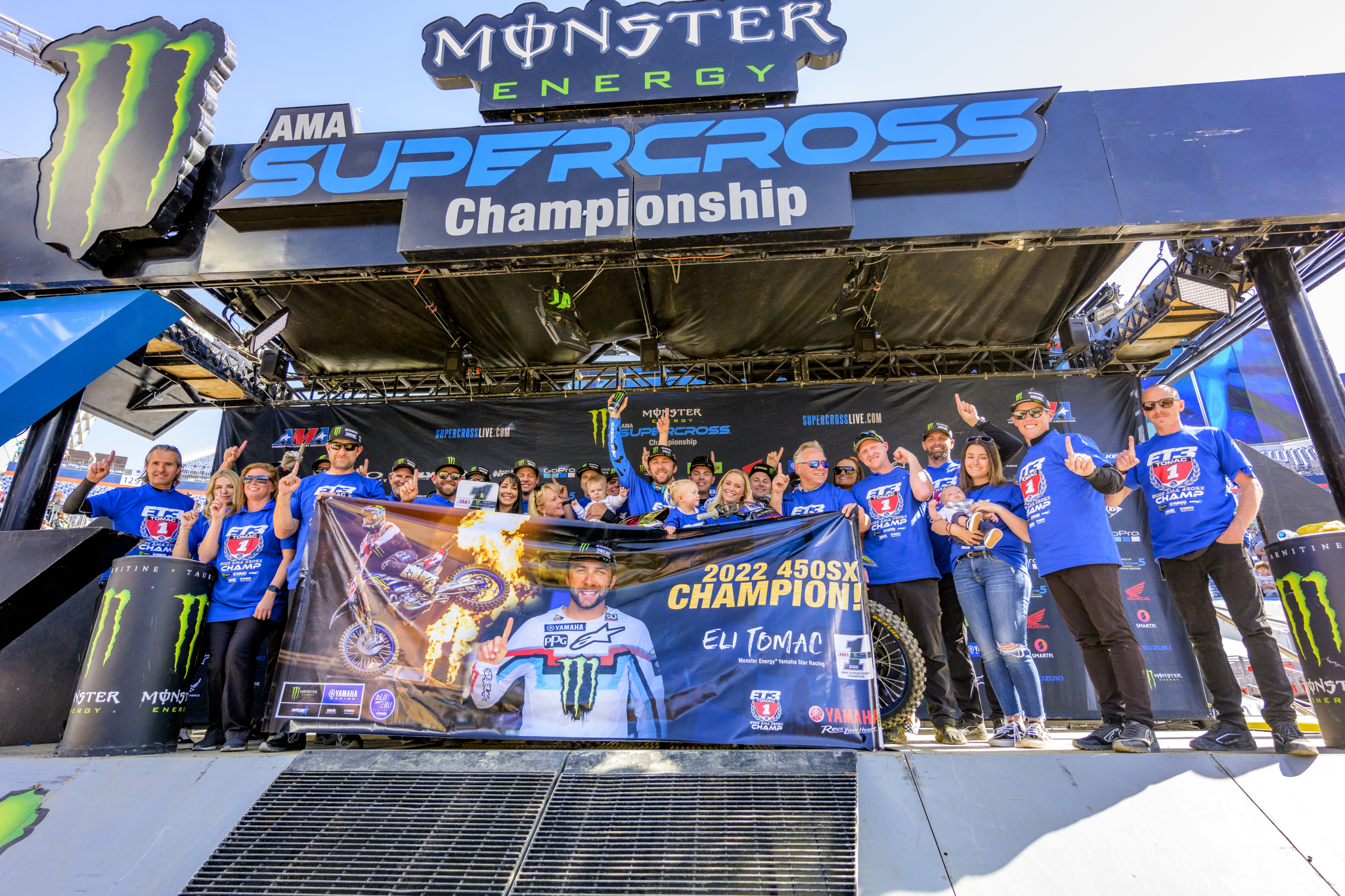 « Monster Energy Yamaha Star Racing tient à exprimer toute sa gratitude envers Eli Tomac pour les résultats remarquables obtenus ensemble durant les quatre dernières saisons (2022–2025) dans le cadre du championnat du monde SuperMotocross, et lui adresse ses meilleurs vœux pour la suite de sa carrière. Dès sa première année au sein de l’équipe, Tomac s’est illustré sur la YZ450F Monster Energy Yamaha Star Racing en remportant les titres AMA Supercross SX 450 et Pro Motocross 450 en 2022, avant de mener l’équipe des États-Unis à la victoire au Motocross des Nations. Malgré des blessures l’ayant écarté des pistes à plusieurs reprises par la suite, le pilote originaire du Colorado a signé 16 victoires en finales SX et 16 manches gagnées en MX, dont deux triomphes à Daytona, faisant de lui le pilote le plus victorieux de l’histoire sur ce circuit légendaire. »